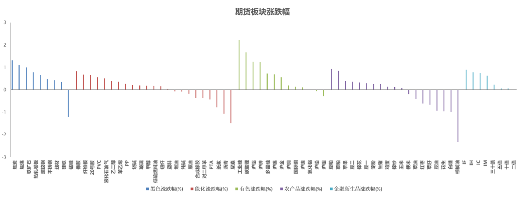 从板块整体表现看,有色、黑色多数上涨,农产品多数下跌。